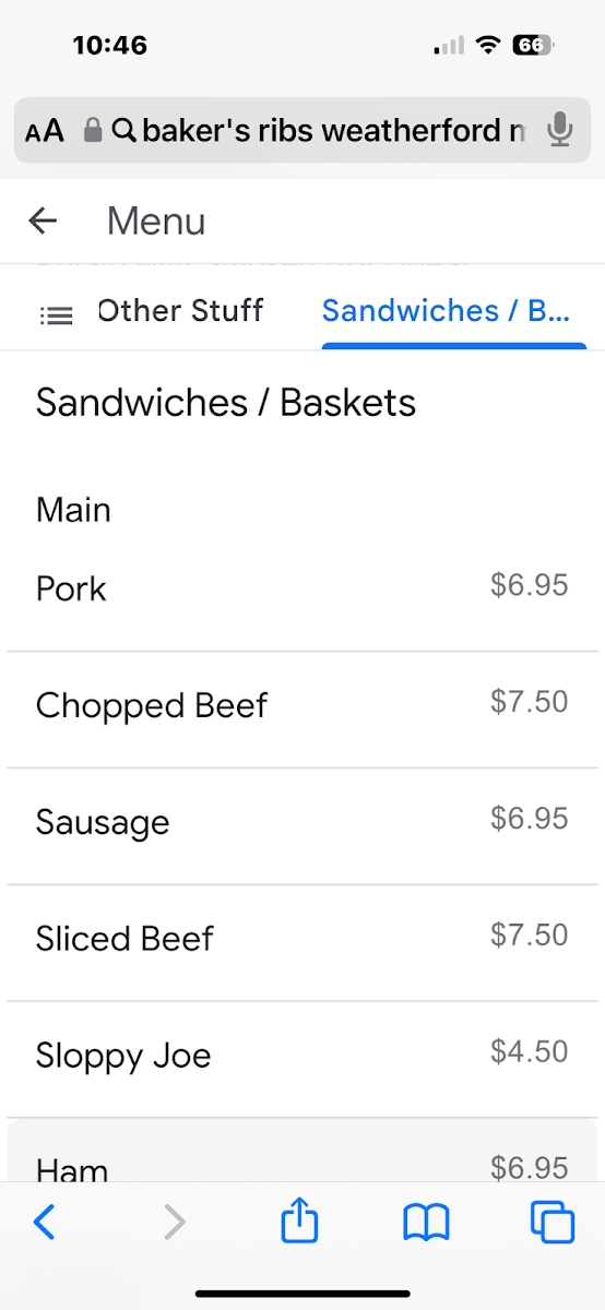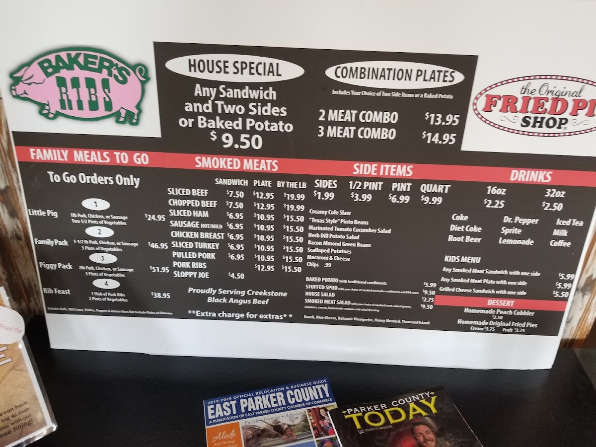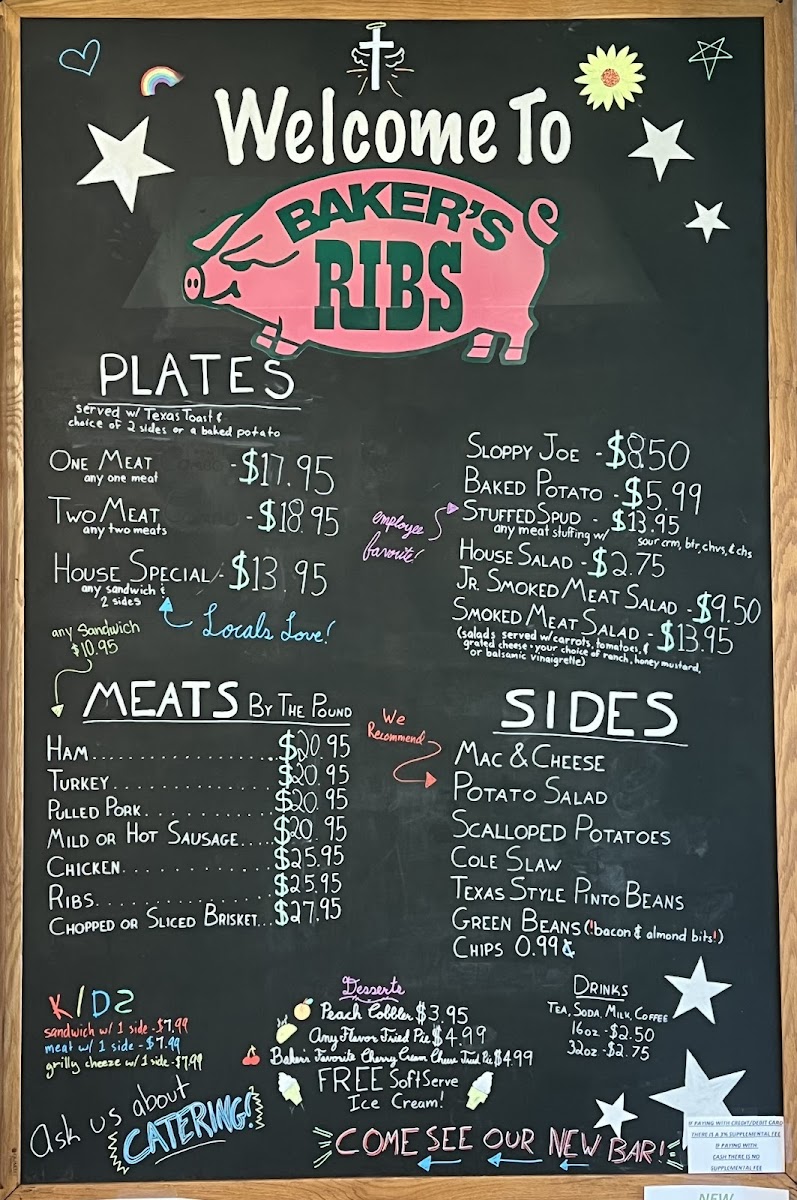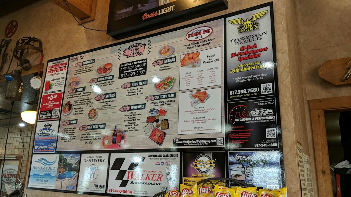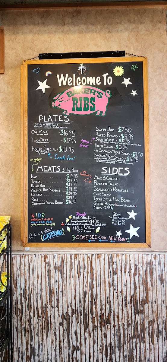 At Baker's Ribs Menu, you’re in for a true treat. Located in Weatherford, Texas, this cozy spot is known for its mouthwatering barbecue. With a focus on tender, slow-cooked meats, each dish is packed with flavor. From the fall-off-the-bone ribs to the perfectly smoked brisket, there's something for everyone. The menu offers a variety of options, including savory sides like mashed potatoes, coleslaw, and cornbread. Each bite feels like a taste of home, with all the smoky goodness that only the best barbecue joints can deliver. Whether you’re coming for a quick lunch or a hearty dinner, Baker's Ribs Menu promises to satisfy your cravings for authentic, delicious comfort food.